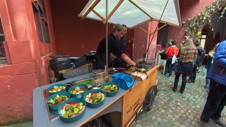Zum Ausklang des Tages wurde es noch einmal gesellig: Bei regionalen Verkostungen von Kommune Schafhof, Piluweri, dem Backhaus der Vielfalt und der Gartencoop, sowie einem leckeren pflanzenbasierten Catering von TrueFoods konnten die Teilnehmenden den Gipfel entspannt ausklingen lassen und weiter netzwerken.